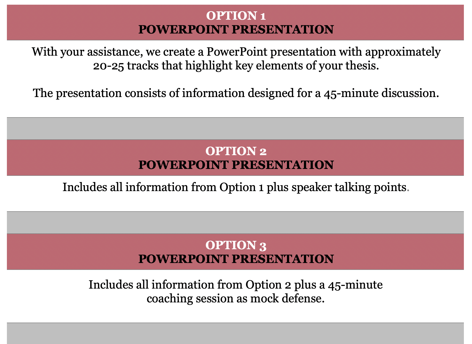 Dee’tail Consulting offers three options to assist you with defending your thesis.
